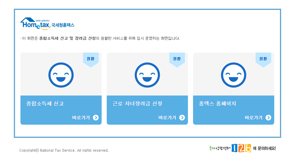 원하는 메뉴를 바로가기 하든, 국세청 홈페이지를 바로가기 하든