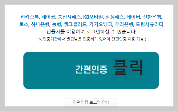 로그인에 필요한 공인인증서, 금용인증서를 발급받기 전이거나 소지하고 있지 않는 경우 간편하게 로그인할 수 있는 방법이 있는데요.