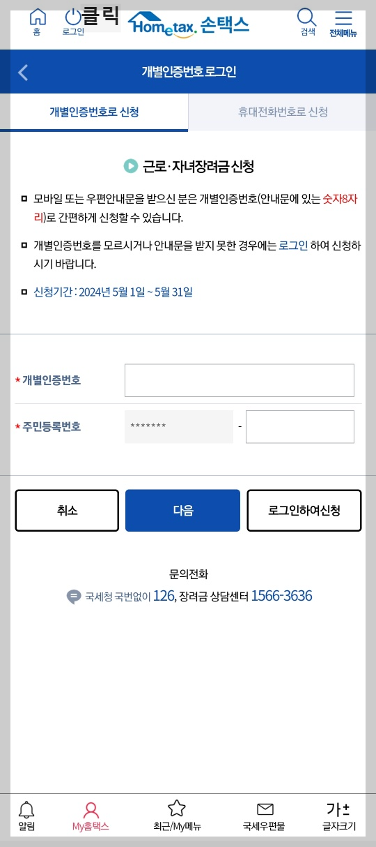 국세청에서 어떤 신청을 하든 결과적으로는 로그인이 라는 과정이 필요하기 때문에